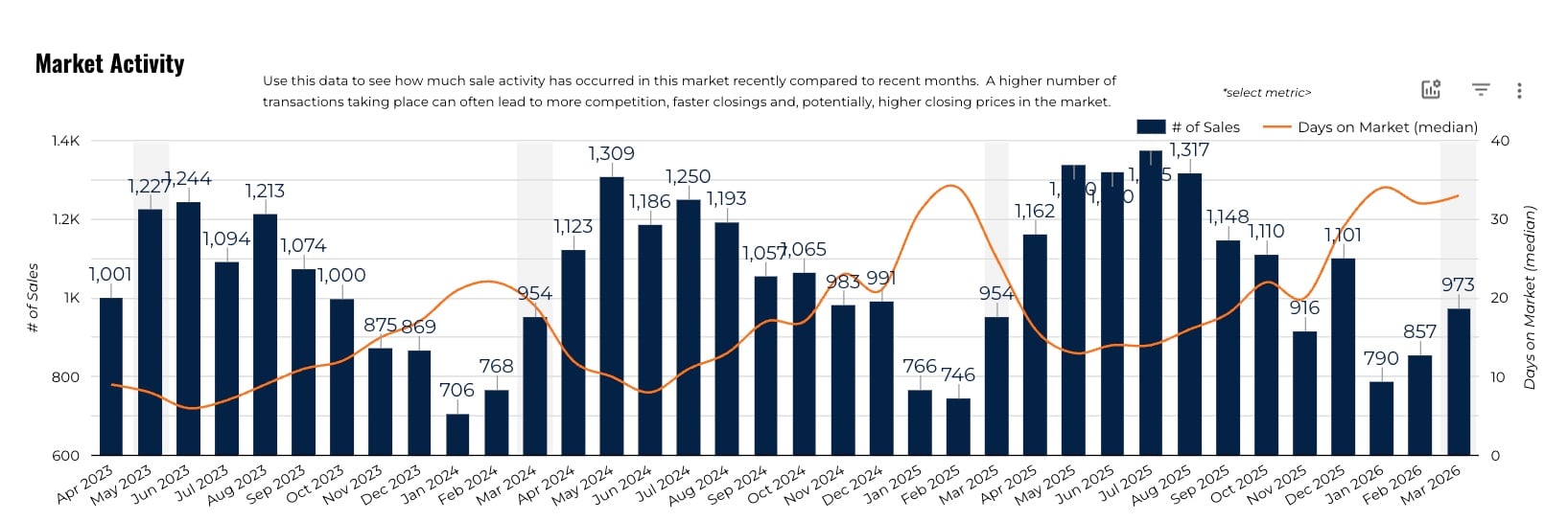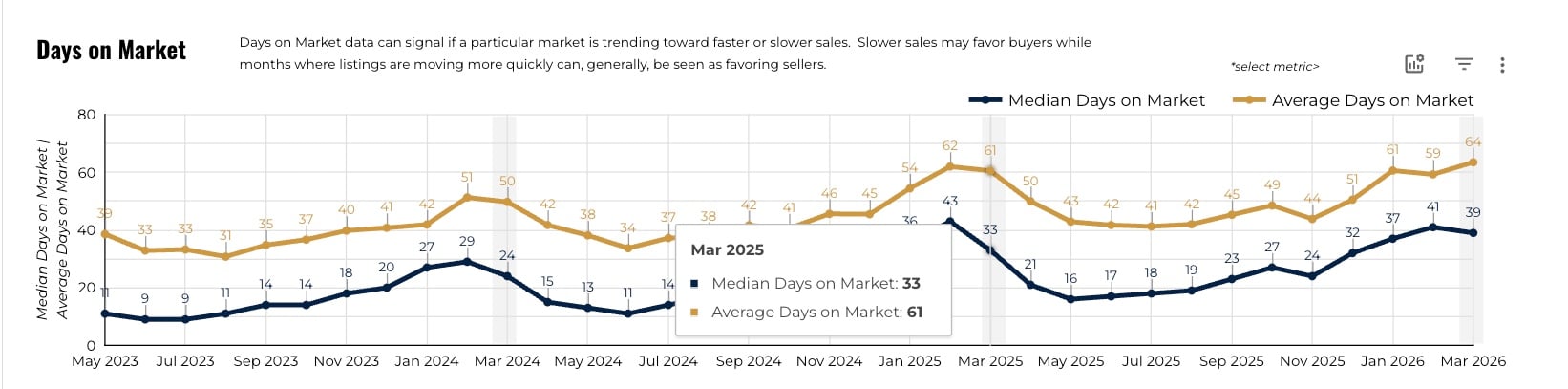 One of the more telling metrics this month is median days on market, which increased to 39 days, up from 33 days in March 2025. Homes are still moving, but the pace has slowed, putting greater emphasis on strategic pricing, presentation, and marketing from the start.