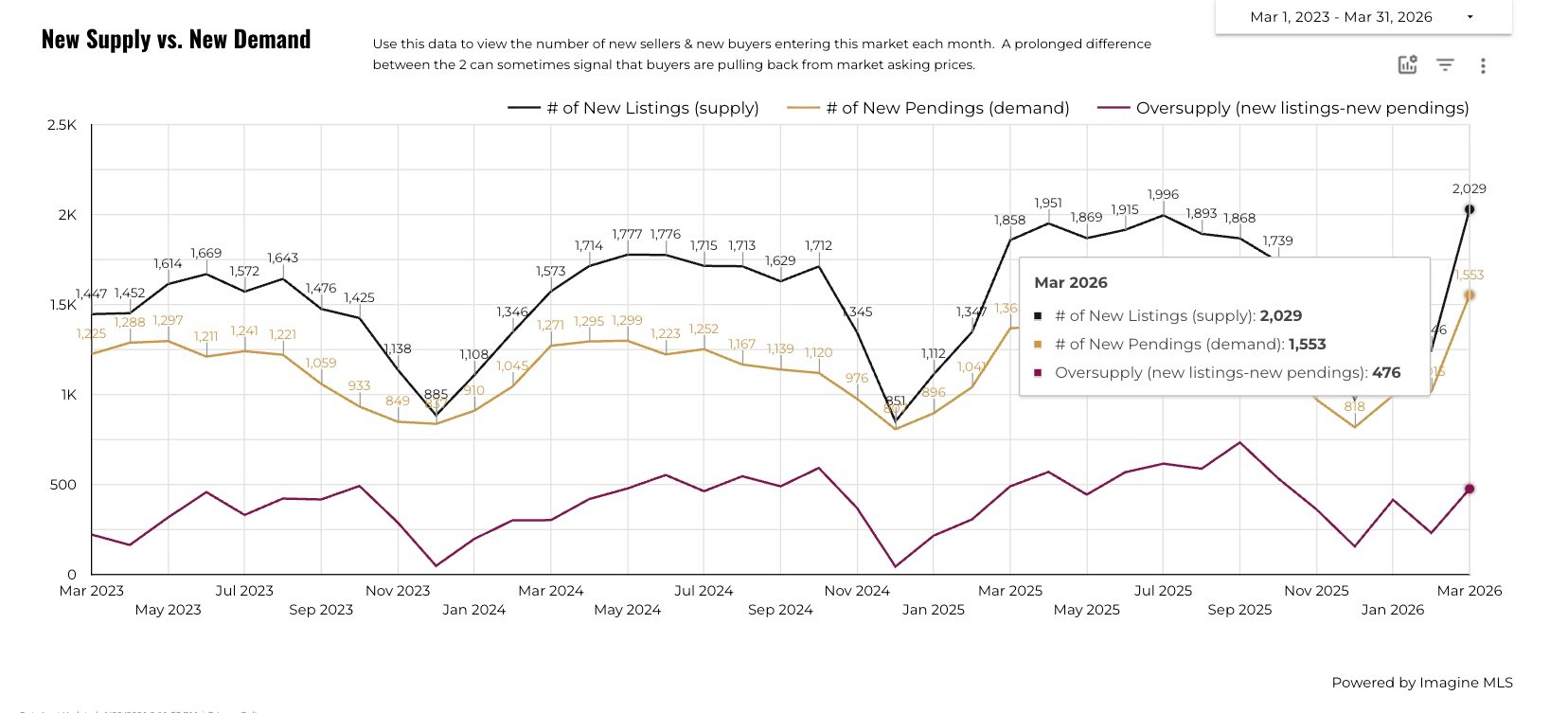 On the supply side, we saw 2,029 new listings hit the market, giving buyers more options and creating additional competition among sellers. At the same time, new pending sales reached 1,553, showing that demand is still active, but more selective.