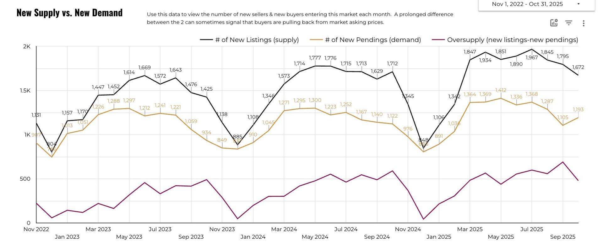 This uptick, even during a month that typically marks the start of the seasonal slowdown, signals continued buyer engagement. Many purchasers remain motivated by life changes, relocations, and opportunities presented by gradually improving inventory levels.
