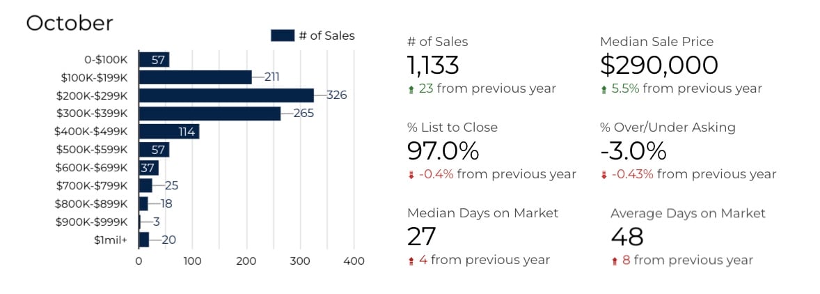 October recorded 1,133 closed sales, a 23-transaction increase compared to the same month last year.