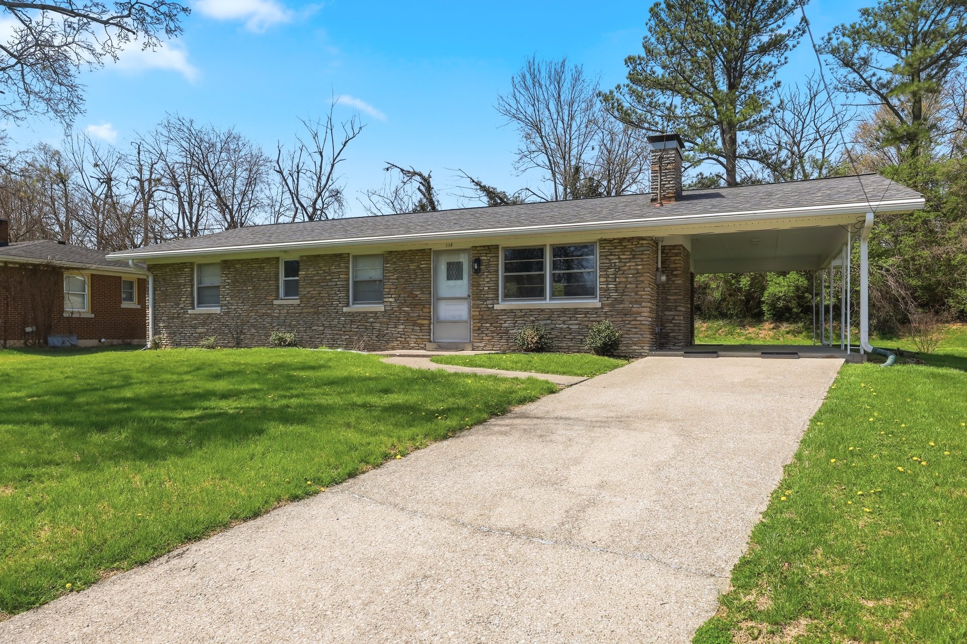 This adorable Bedford stone ranch offers timeless appeal and a welcoming setting on a spacious lot backed by a tree line, with open green space views just across the street. Imagine starting your mornings with coffee while enjoying the peaceful surroundings and natural views. The home features three bedrooms and two full bathrooms, along with beautiful original hardwood floors that add warmth and character throughout. The updated kitchen is designed for both everyday living and entertaining, complete with granite countertops, stainless steel appliances, and ample workspace. Both bathrooms have been thoughtfully updated, including the conversion of a former half bath into a full bathroom with a spacious shower. The unfinished basement provides abundant storage or the opportunity to create additional living space tailored to your needs. Additional features include a convenient carport and a setting that balances privacy with an open, inviting feel. The property also offers proximity to Eastern Kentucky University and easy access to I-75, making daily commutes and travel simple and efficient.
