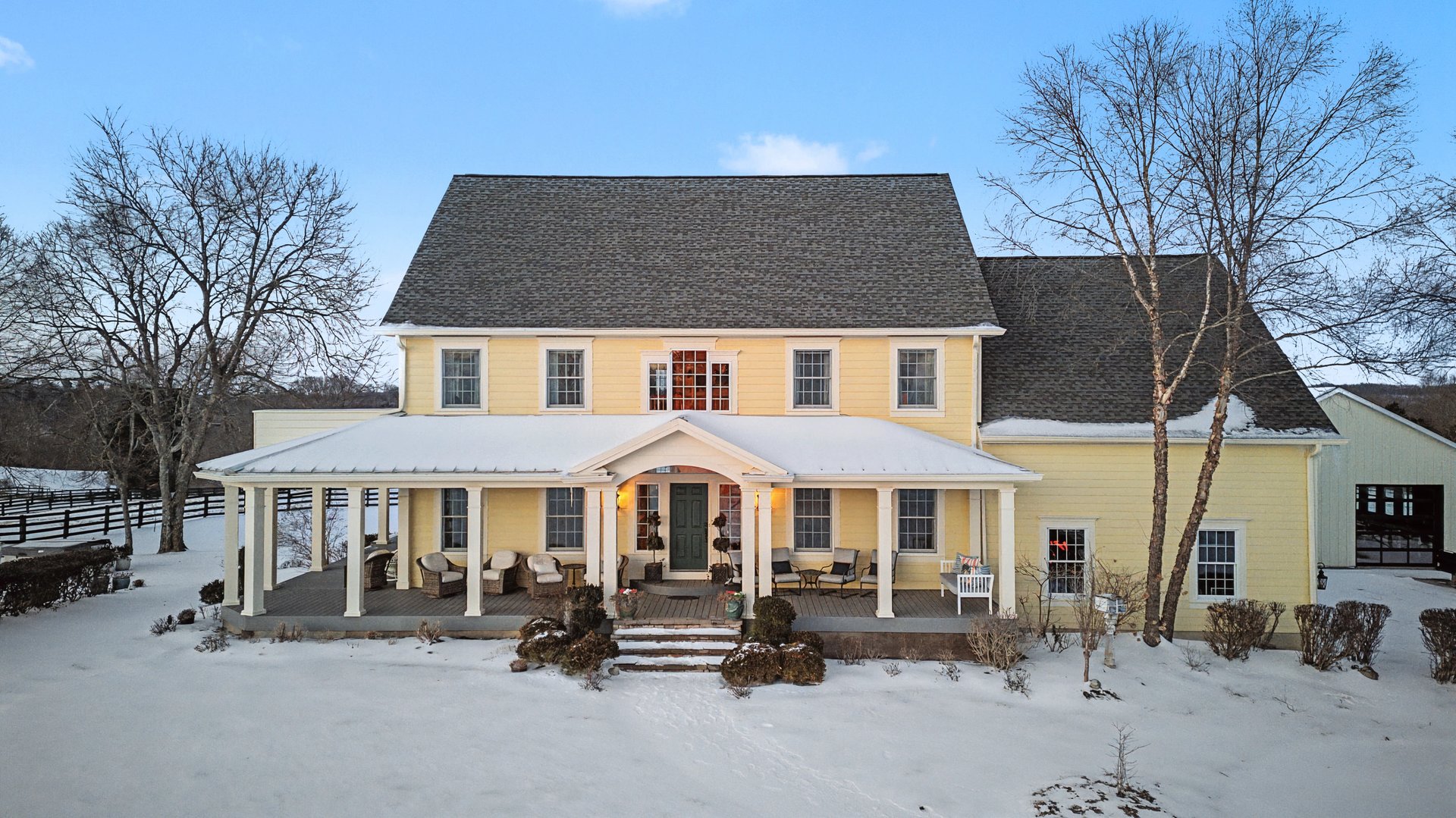 Back on the market with fresh updates! Enjoy newly refinished hardwood floors, brand-new carpet in the office, and professionally cleaned carpets throughout. Step into your own fairytale with this timeless yellow farmhouse, gracefully set on 20+ private acres overlooking the dramatic cliffs of the Central Kentucky Palisades. Every detail of this extraordinary estate blends classic charm with thoughtful modern updates from wide plank pine floors and a stunning stone fireplace to high-end finishes throughout. Designed for grand entertaining and everyday comfort, the home features 5 spacious bedrooms, including two primary suites one on the main level and one upstairs with vaulted ceilings and a luxurious bath. The gourmet kitchen is a showstopper with high-end appliances, a dramatic statement hood, oversized island with seating for six, and a sunny dinette. You'll love the formal entry, office, and practical mudroom that connects the garage to the back deck. A fully equipped basement apartment with its own kitchen, en-suite king bedroom, living space, and private entrance offers the perfect setup for guests, in-laws, or income potential. Step outside to your own private resort-style retreat, complete with heated saltwater pool, hot tub, full-size tennis court, barn, arena and 1600 sq ft man cave/shop with car lift.