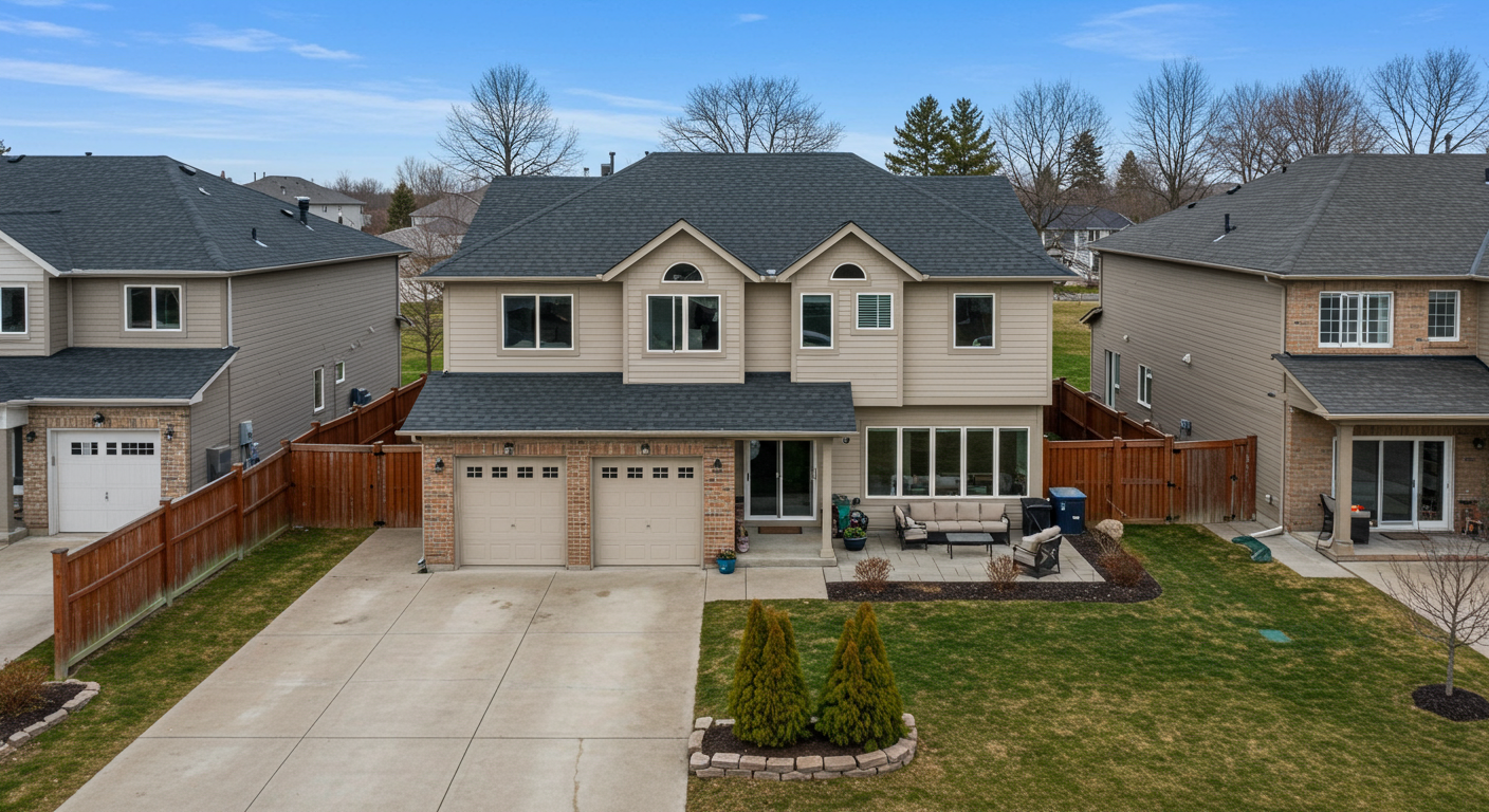 Welcome to this charming one-and-a-half-story home in the popular Danby Corners subdivision! This home stands out from the rest with a full unfinished basement with nine-foot ceilings, offering ample storage or the opportunity to expand your living space. As you enter, the spacious living room with hardwood floors flows seamlessly into the dining area and kitchen, which are equipped with stainless steel appliances and a tile backsplash. The primary bedroom is conveniently located on the first floor and offers a private ensuite and walk-in closet. Upstairs, two additional bedrooms share a full bathroom.
