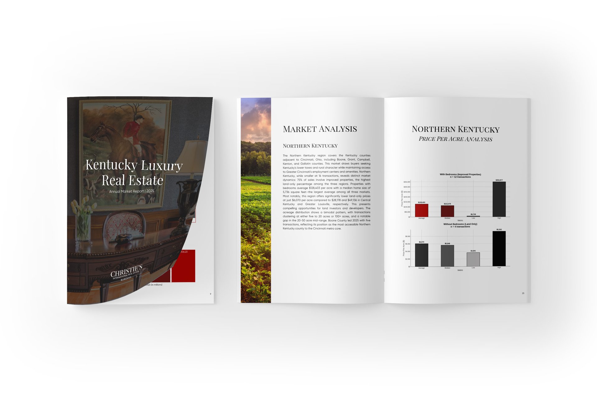 Insights into the 2025 luxury real estate market across four major segments in the Kentucky luxury real estate market - Central Kentucky, Greater Louisville, Northern Kentucky, and Land and Farm trends within each major region. Also, find a peek at what to expect in 2026 with our luxury real estate forecast.